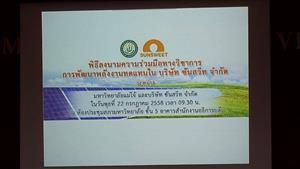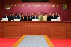 เมื่อวันพุธที่ 22 กรกฏาคม 2558 มหาวิทยาลัยได้มีการประชุมคณะกรรมการบริหารมหาวิทยาลัย ครั้งที่ 12/2558 และได้จัดพิธีลงนาม MOU ระหว่าง มหาวิทยาลัยแม่โจ้ กับ บริษัท ซันสวีท จำกัด เพื่อดำเนินการ ศึกษาค้นคว้า สร้างเครือข่ายความร่วมมือทางวิชาการ พัฒนาพลังงานทดแทนในบริษัท ซันสวีท จำกัด ที่เป็นมิตรกับสิ่งแวดล้อม ส่งเสริมให้เกิดการถ่ายทอดผลงานวิจัยไปใช้ประโยชน์ในเชิงพาณิชย์และสาธารณะประโยชน์ ซึ่งสอดคล้องกับยุทธศาสตร์การพัฒนามหาวิทยาลัยแม่โจ้สู่การเป็นมหาวิทยาลัยเชิงนิเวศ โดยมี ผู้ช่วยศาสตราจารย์ ดร.จำเนียร ยศราช อธิการบดี ให้เกียรติกล่าวต้อนรับและเป็นผู้แทนจากมหาวิทยาลัยแม่โจ้ ลงนามความร่วมมือทางวิชาการ และมี ดร.องอาจ กิตติคุณชัย ประธานกรรมการ เป็นผู้แทนจาก บริษัท ซันสวีท จำกัด ร่วมลงนามในครั้งนี้