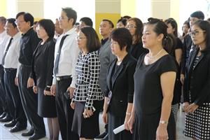 เมื่อวันศุกร์ที่ ๑๔ ตุลาคม ๒๕๕๙ ผู้ช่วยศาสตราจารย์ ดร.กชพร ศิริโภคากิจ รองอธิการบดีมหาวิทยาลัยแม่โจ้ นำคณะผู้บริหาร คณาจารย์ บุคลากร นักศึกษา มหาวิทยาลัยแม่โจ้ พิธีถวายอาลัยส่งเสด็จสู่สวรรคาลัย น้อมรำลึกถึงพระมหากรุณาธิคุณ พระบาทสมเด็จพระปรมินทรมหาภูมิพลอดุลยเดช ณ โถงชั้น 1 อาคารสำนักงานอธิการบดี มหาวิทยาลัยแม่โจ้ ในการนี้ บุคลากรงานประชุม นำโดย ผู้อำนวยการกองกลาง ได้เข้าร่วมในพิธีดังกล่าวด้วย