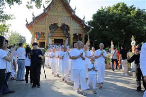 วันเสาร์ที่ 3 ธันวาคม เวลา 15.00 น. มีพิธีปลงผมนาคใน ณ วัดห้วยเกี๋ยง อ.สันทราย จ.เชียงใหม่ โดยพระครูสุธรรมานุสิฐ เจ้าอาวาสวัดห้วยเกี๋ยง นำผู้อุปสมบท กล่าวคำขอขมาและอโหสิกรรม โดยมี ผู้ช่วยศาสตราจารย์ ดร.จำเนียร ยศราช อธิการบดี พร้อมด้วยผู้บริหารมหาวิทยาลัยแม่โจ้ บุคลากร เจ้าภาพอุปถัมภ์ ผู้ปกครอง และแขกผู้มีเกียรติขลิบผมนาค คณะสงฆ์โกนผมนาค ตามลำดับ