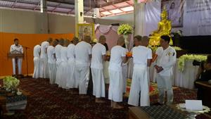 วันอาทิตย์ที่ 4 ธันวาคม 2559 เวลา 14.00 น. ผู้อุปสมบท 89 คน พร้อมกัน ณ โถงสำนักงานอธิการบดี ชั้น 1 เพื่อกล่าวคำอธิษฐานจิตหน้าพระบรมฉายาลักษณ์ จากนั้นจะตั้งขบวนแห่นาคไปยังวัดห้วยเกี๋ยง เพื่อเข้าพิธีอุปสมบทในเวลา 15.00 น. เป็นต้นไป โดยได้รับเกียรติจาก นายกฤษณ์ ธนาวณิช รองผู้ว่าราชการจังหวัดเชียงใหม่เข้าร่วมพิธี จุดเทียนเครื่องทองน้อย และนำกล่าวสำนึกในพระมหากรุณาธิคุณ, ดร.อำนวย ยศสุข นายกสภามหาวิทยาลัยแม่โจ้ กล่าววัตถุประสงค์โครงการอุปสมบทหมู่ จากนั้น รองผู้ว่าราชการจังหวัดเชียงใหม่ อธิการบดี ผู้บริหาร เจ้าภาพอุปสมบท ผู้ปกครอง แขกผู้มีเกียรติมอบผ้าไตรนาค และพระอุปัชฌาย์ทำพิธีตามลำดับ ในการนี้ งานประชุมได้ร่วมปฏิบัติงาน ต้อนรับรองผู้ว่าราชการ นายกสภามหาวิทยาลัย ผู้บริหาร และผู้มาร่วมงานดังกล่าวด้วย