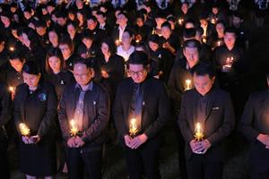 เมื่อวันที่ 4 ธันวาคม 2559 เวลา 18.30 น. แม่โจ้จัดพิธีจุดเทียนถวายความอาลัยเพื่อน้อมรำลึกในพระมหากรุณาธิคุณอันหาที่สุดมิได้ มีผู้เข้าร่วมพิธีจำนวนกว่า 2,000 คน พร้อมกันแล้วจะมีการฉายสารคดีเทิดพระเกียรติ “ตามรอยพ่อ ตามรอยความดี” ขึ้นจอ LED ขนาดใหญ่ เวลา 19.09 น. ดร.อำนวย ยศสุข นายกสภามหาวิทยาลัยแม่โจ้ เป็นประธานจุดเทียนเครื่องทองน้อยหน้าพระบรมฉายาลักษณ์ นำกล่าวสำนึกในพระมหากรุณาธิคุณ แล้วจุดเทียนพร้อมกันยืนสงบนิ่งถวายความอาลัย 89 วินาที ผู้เข้าร่วม พิธีร้องเพลงสรรเสริญพระบารมีพร้อมกัน ต่อด้วย ร่วมกับขับร้องเพลง “ต้นไม้ของพ่อ” เพื่อเป็นการประกาศเจตนารมณ์ของชาวแม่โจ้ ในการสืบสานพระราชปณิธาน “ตามรอยพ่อ กษัตริย์เกษตร” เพื่อประโยชน์สูงสุดต่อภาคการเกษตรไทย อย่างยั่งยืนต่อไป ณ สนามกีฬาอินทนิล มหาวิทยาลัยแม่โจ้