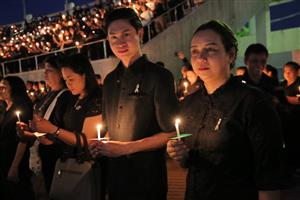 เมื่อวันที่ 5 ธันวาคม 2559 ผู้บริหารมหาวิทยาลัย นำโดยรองอธิการบดี (อาจารย์รชฏ เชื้อวิโรจน์) และรองอธิการบดี (ผศ.พาวิน มะโนชัย) พร้อมคณบดี ผู้อำนวยการ คณาจารย์ และบุคลากรมหาวิทยาลัยแม่โจ้ เข้าร่วมพิธีน้อมรำลึกถึงพระบาทสมเด็จพระปรมินทรมหาภูมิพล อดุลยเดช เนื่องในวันคล้ายวันพระราชสมภาพ 5 ธันวาคม ณ สนามกีฬาสมโภชเชียงใหม่ 700 ปี สำหรับวัตถุประสงค์เพื่อเป็นการน้อมรำลึกถึงพระมหากรุณาธิคุณที่มีต่อปวงชนชาวไทยตลอดที่ทรงครองราชย์ยาวนาน 70 ปี โดยจังหวัดเชียงใหม่ จัดให้มีขบวนอัญเชิญเครื่องราชสักการะน้อมเกล้าน้อมกระหม่อมถวายอาลัย พิธีจุดเทียนถวายอาลัย และการแสดงทางวัฒนธรรม การฟ้อนเทียน โดยช่างฟ้อน จำนวน 1,999 คน
