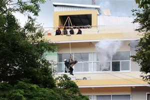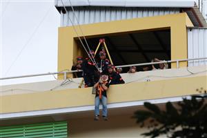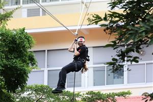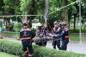 สำหรับในช่วงบ่าย เป็นกิจกรรม "ภาคปฎิบัติตามสถานการณ์จำลอง การฝึกซ้อมแผนและฝึกซ้อมการอพยพหนีไฟจากอาคารสูง" เพื่อเตรียมความพร้อมรับเหตุที่อาจจะเกิดขึ้นจริง เช่น วิธีการเอาตัวรอดจากเหตุแผ่นดินไหว การใช้อุปกรณ์ดับเพลิง วิธีการดับเพลิง ตลอดจนสามารถระงับเหตุอัคคีภัยได้ในเบื้องต้น การช่วยเหลือผู้บาดเจ็บในอาคารสูง รวมทั้งการอพยพหนีไฟเมื่อเกิดเหตุไฟไหม้ เพื่อเป็นการลดการสูญเสียชีวิตและทรัพย์สิน
