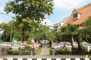 วันที่ 30 ตุลาคม 2560 ดร.อำนวย ยศสุข นายกสภามหาวิทยาลัย ผศ.ดร.จำเนียร ยศราช อธิการบดีมหาวิทยาลัยแม่โจ้ พร้อมด้วย คณะผู้บริหาร คณาจารย์ บุคลากร นักศึกษา และตัวแทนศิษย์เก่าแม่โจ้ ร่วมวางพวงมาลาเพื่อรำลึกถึง ศาสตราจารย์ ดร.วิภาต บุญศรี วังซ้าย อธิการบดีคนแรกของมหาวิทยาลัยแม่โจ้ ผู้ให้วลีอมตะ "งานหนักไม่เคยฆ่าคน" ณ ลานอนุสาวรีย์ฯ ด้านหน้าสำนักหอสมุด มหาวิทยาลัยแม่โจ้ ในการนี้ งานประชุมได้ส่งผู้แทนเข้าร่วมในพิธีดังกล่าวด้วย